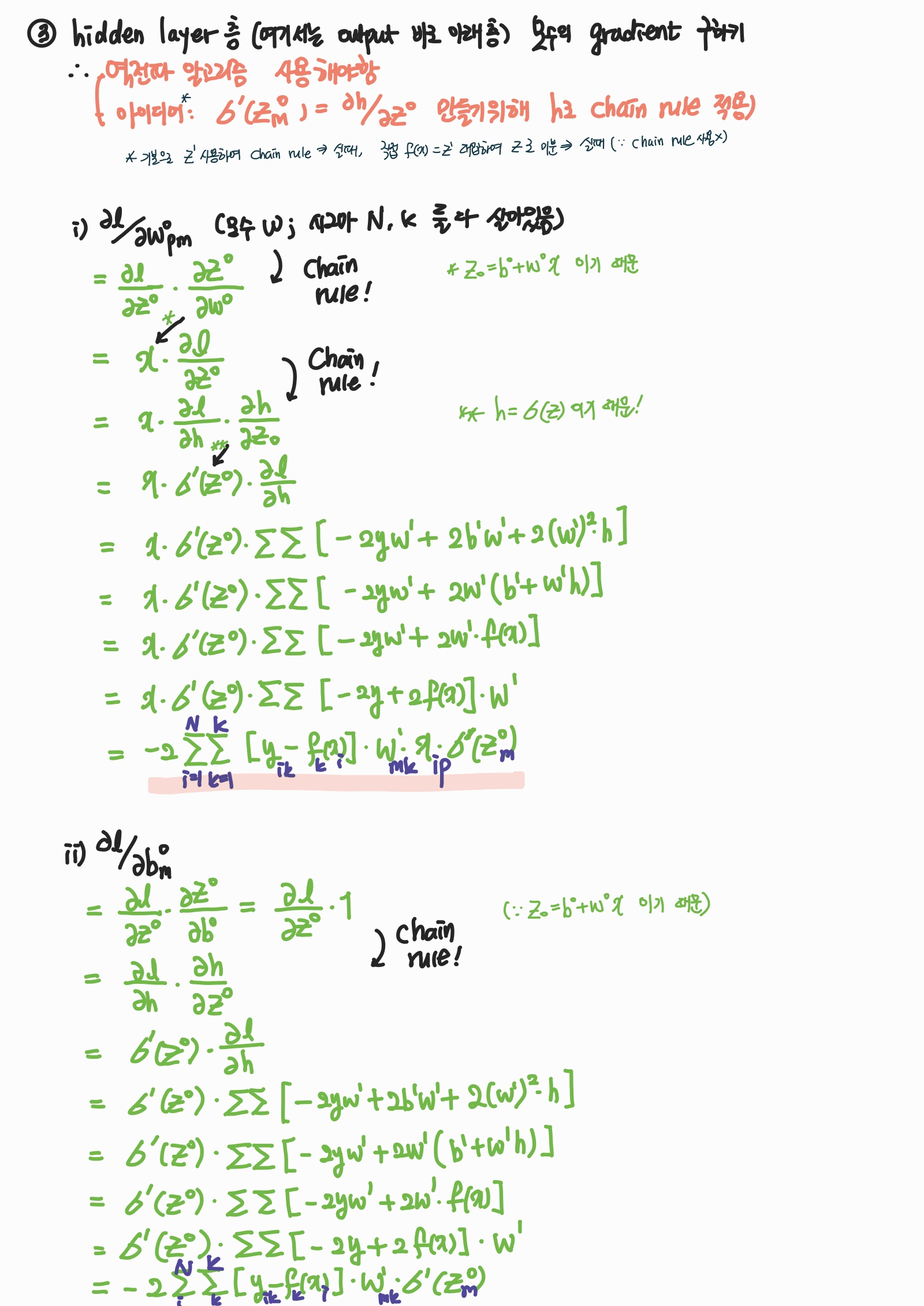 - DNN 모수들의 (b, w) gradient를 구하는 알고리즘